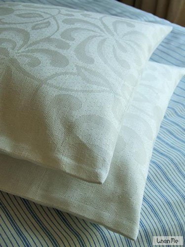 Description : Aggiungi un po' di lussuosi damaschi alla decorazione de la letto... Queste favolose copricuscini in lino bianco Crisantemo daranno il tocco finale a una letto di qualunque stile.