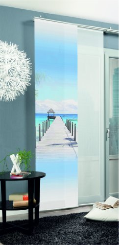 Title : Home fashion 86763-706 - Tenda a pannello con stampa digitale "Barbuda", tessuto decorato, 245 x 60 cm, colore: BluASIN : B00BJMCKVA