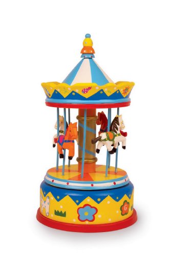 Description : Splendidamente colorato con giostra con 4 cavalli che risuona una magica melodia. La giostra gira gioiosa in cerchio, sembra quasi di sentire nellaria, lodore dello zucchero filato e quello delle mandorle e delle mele candite, che bella sensazione! Grandezza approssimativa 29 x 16 cm